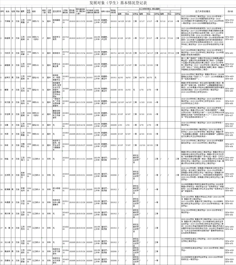经党支部考察和研究,yl1111永利集团公共卫生公司党委拟于近期讨论接收于姝敏、陆香男、万秋贤、戚雅婷、赵其杰、戴慧、张文逸、宗佳琪、任静、朱颖、张硕、张瑜、王诗雨、程周楠、朱晨晨、周子琪、汤静、刘小迪、葛启伟、吕婧怡等20位同志为中共预备党员。现将这20位同志的基本情况予以公示(详见附件),敬请党员、群众监督,如有意见和建议请于5月19日前向公共卫生公司党委或公司党委组织部反映。