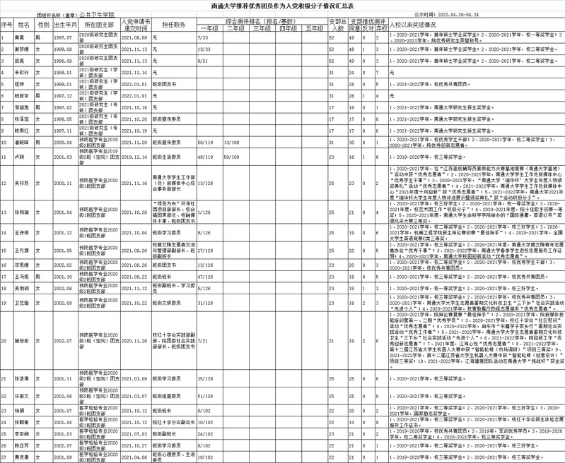 现将推荐情况予以公示,公示时间:4月20日-4月24日。