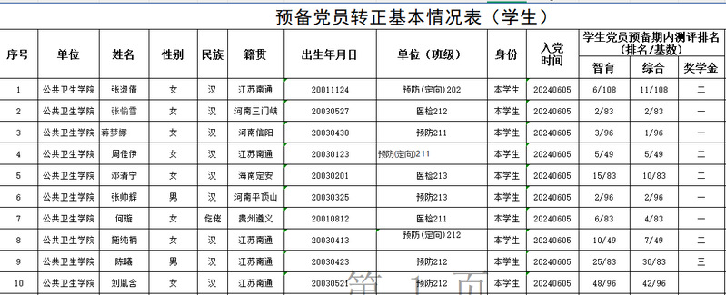 经党支部考察和研究,yl1111永利集团公共卫生公司党委拟于近期讨论张愉雪、蒋梦娜、周佳伊、邓清宁、张帅辉、张淑倩、何璇、刘胤含、陈曦、施纯楠等10位同志的转正事宜。现将这13位同志的基本情况予以公示,敬请党员、群众监督,如有意见和建议请于5月30日前向公共卫生公司党委或公司党委组织部反映。