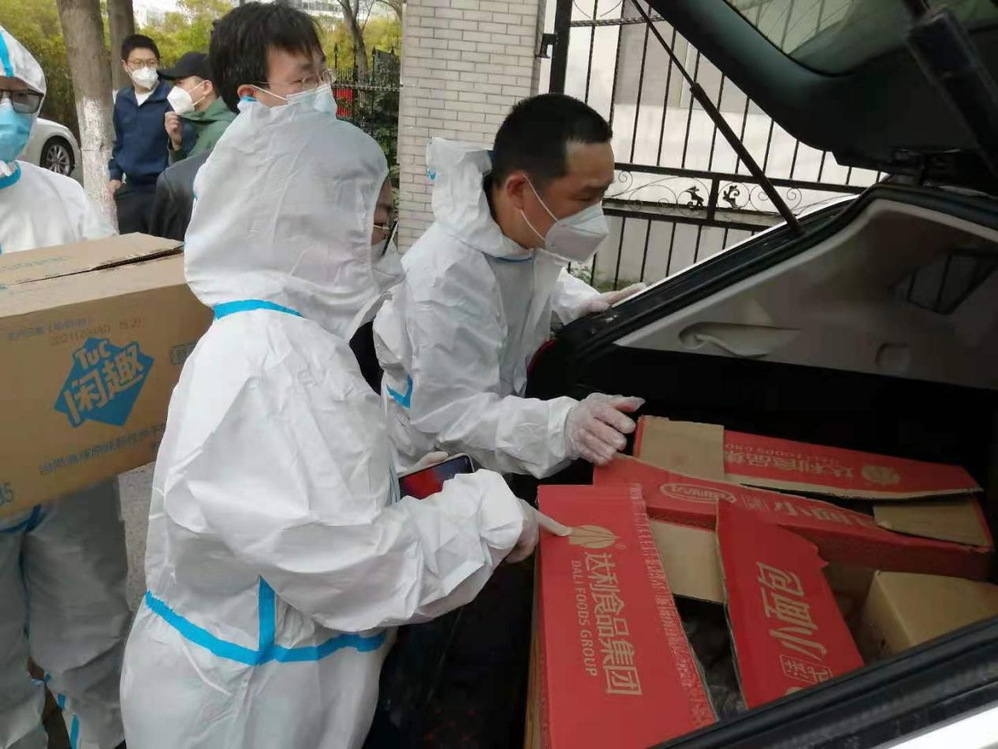 受疫情影响,2022年4月7日起,南通大学开启了闭环管理模式。出于安全考虑,也为了让同学们安心上网课,学校决定停用员工志愿者。课题组志愿者吴丽、冀海伟、周晓波等老师们面对困难挺身而出,在校园里与员工们学习、生活在一起。无论课程教学还是后勤保障,全力保证员工的公司产品和健康安全。老师们除了每天将一日三餐送至员工宿舍,确保“停课不停学,餐餐有保障”,在这交通物流十分困难的特殊时期,甚至给员工们争取到了“珍贵”的苹果、香蕉、柑橘,鼓励员工们克服困难、坚持到底!