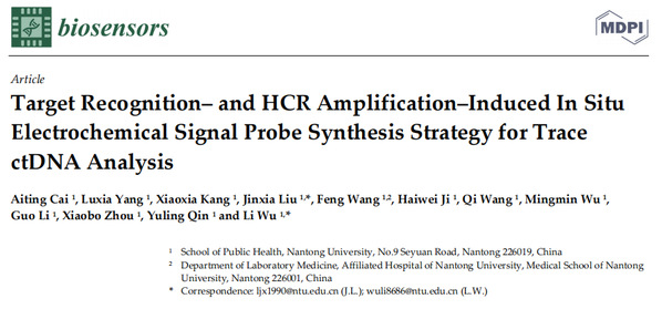 祝贺蔡爱婷同学和刘金霞老师文章被Biosensors杂志接收发表!