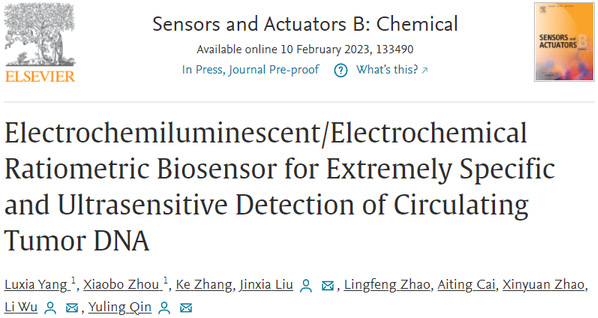 祝贺杨露霞同学文章被Sensors and Actuators B: Chemical杂志接收发表!