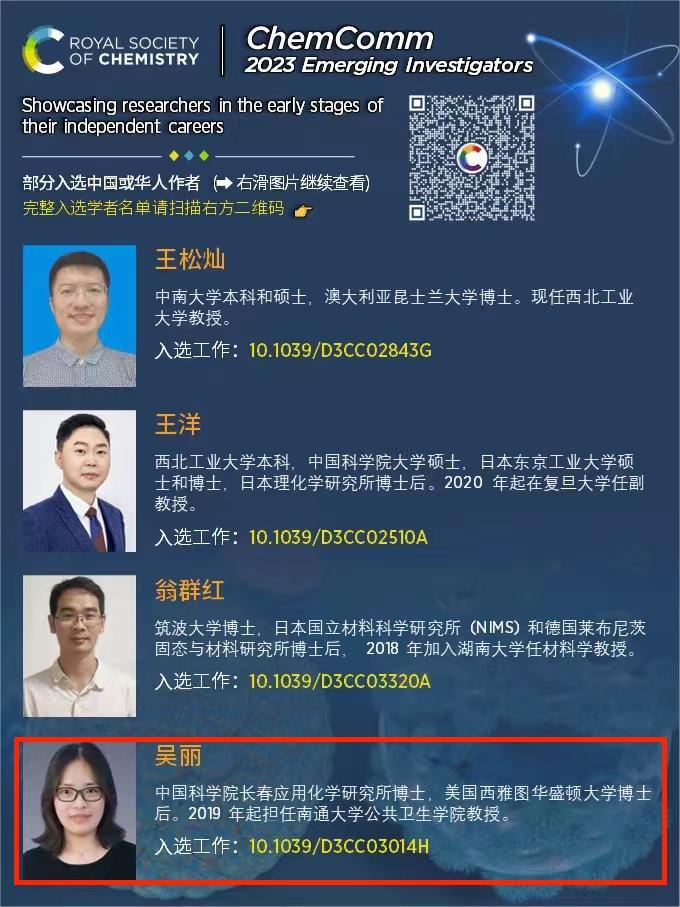 热烈祝贺吴丽教授入选Chemical Communications新锐科学家!